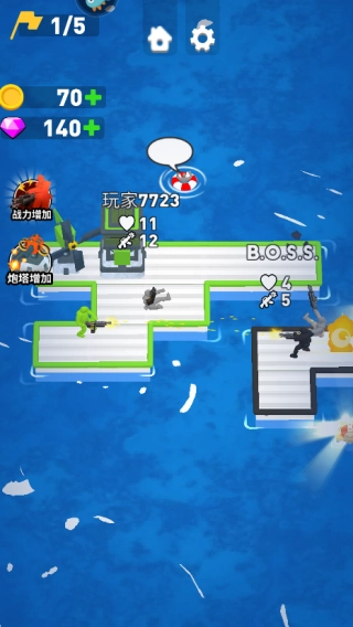 2、依照屏幕上的指示,通过滑动屏幕操控浮板,以实现招募士兵或者扩建船只的操作。