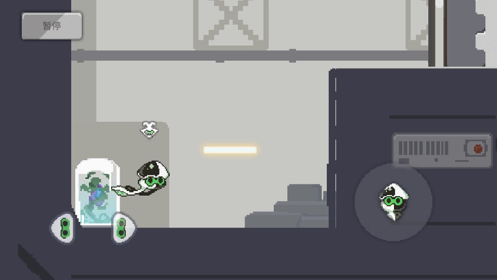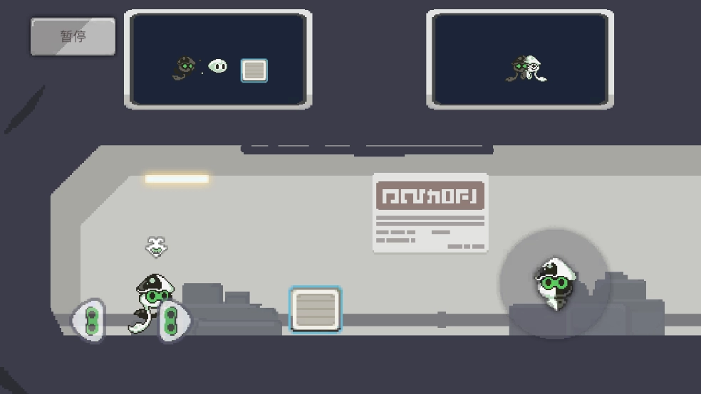 1. 游戏的操作极为简便,仅靠左右键搭配几个功能按钮,就可以操控主角——一只黑白相间的小乌贼。这个模样好似外星生物的小家伙,能把自身一半的身体分离出去,随后再召唤回来完成合体,借此巧妙地穿越各类障碍。