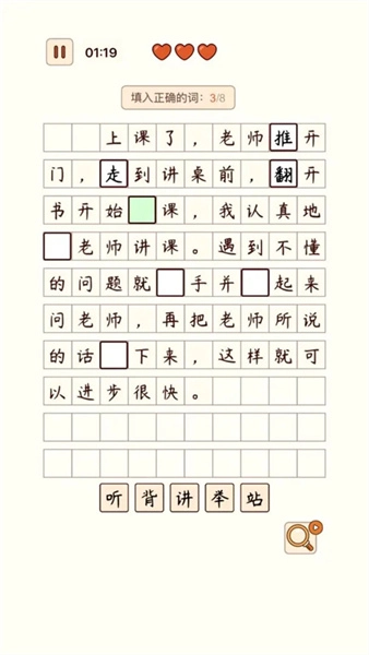 汉字找茬王的关卡都相当有趣,开发者独具匠心地设计了几篇逗趣的小学生作文,玩家需以阅卷老师的视角批改作文。此外,游戏还有完形填空等多种玩法,内容极为丰富。