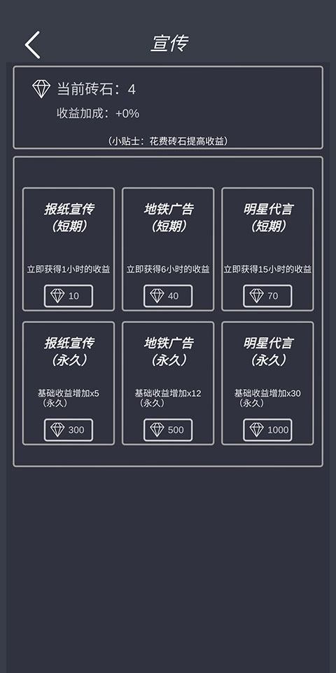 4、我们也可以使用钻石来进行宣传,获得一定时间的额外收益。
