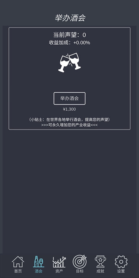 5、如果愿意举办酒会的话,还可以提高自己的名望,从而获得收益加成。
