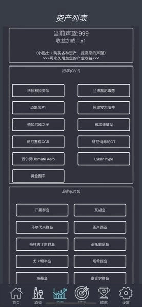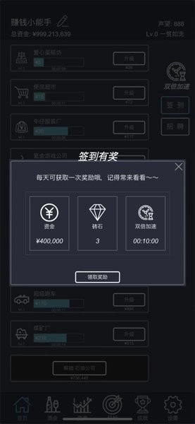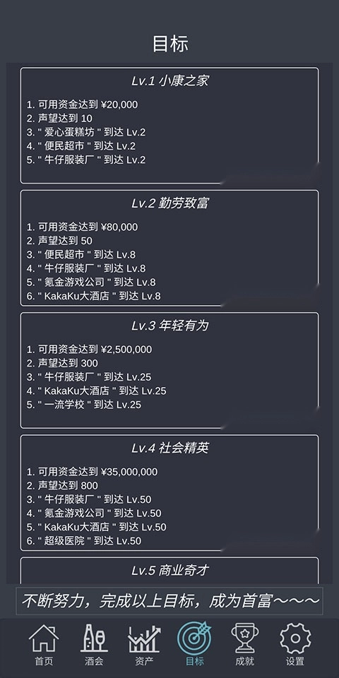 1.多样的赚钱目标:游戏设有多种赚钱目标等待玩家去达成,完成各种赚钱成就,体验经营的乐趣。