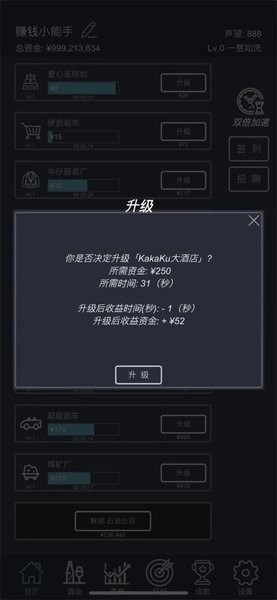 3、为了提升收益,我们还可以对店铺进行升级,或者解锁更多店铺。