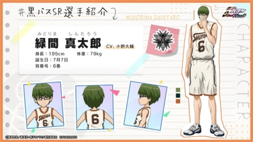 秀德高中一年级。叫绿间“小真(真ちゃん)”,对黑子的能力具有免疫性。