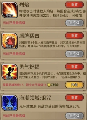 5五星技能的进阶方向为:攻击