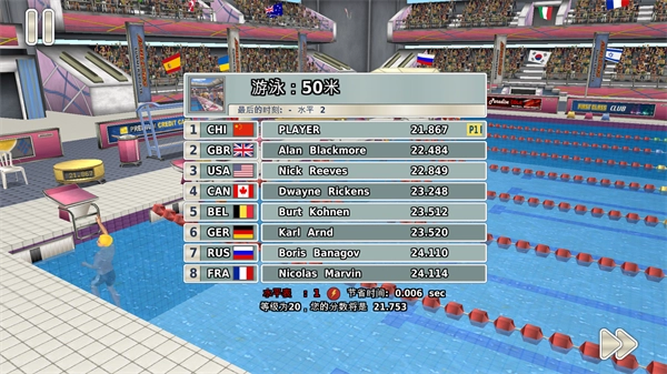 2、体验丰富多样的精彩玩法与操作,你能够参与游泳、跑步、跳远等活动。