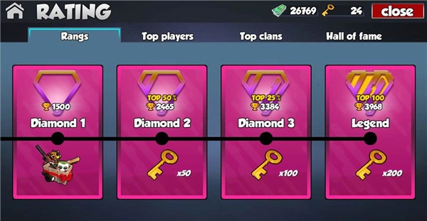 2) “钻石2”等级指的是得分超过1500分的玩家(也就是得分高于其他钻石等级玩家一半的那些玩家)里,排名处于“前50%”的玩家。