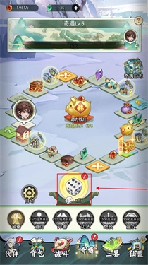 2、玩家能够借助完成主线来收集奇遇骰子,点击后便会随机生成点数,借此在地图中获取各类资源,当走到升级格子时,还能够提升奇遇等级。