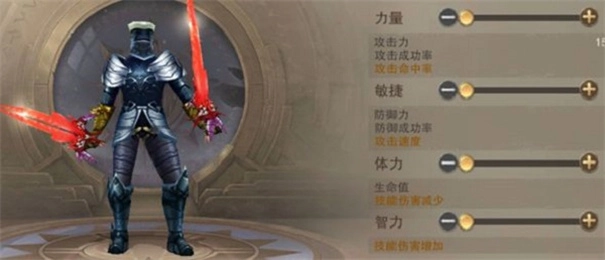 力剑:加点方面以力量为主,敏捷或者体力为辅。这类战士属于近战输出型,凭借较高的攻击力以及高额的技能加成,能够快速对单个角色造成相当可观的伤害。