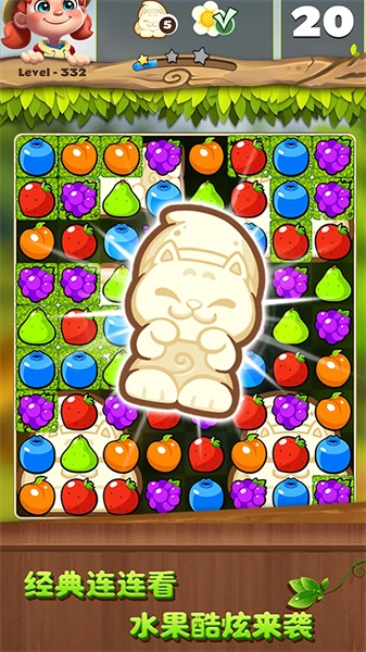 2、玩家只需通过连线消除同色水果,达成目标,就能尽情享受轻松解压的游戏体验。
