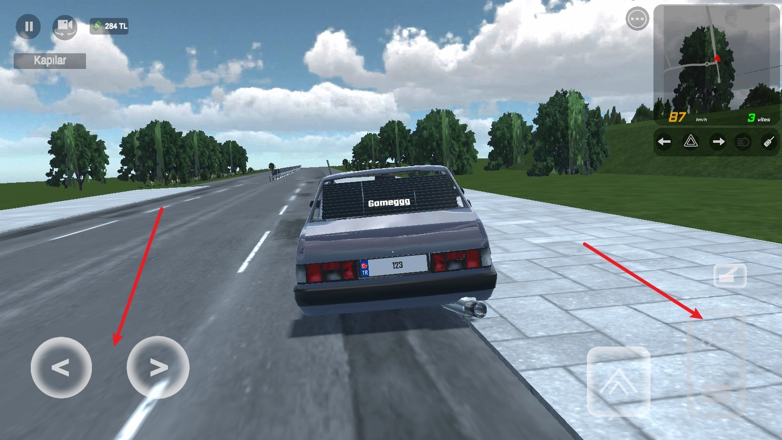 3、在游戏里,左侧用于控制转向,右侧的长踏板是油门,负责控制车辆前行。