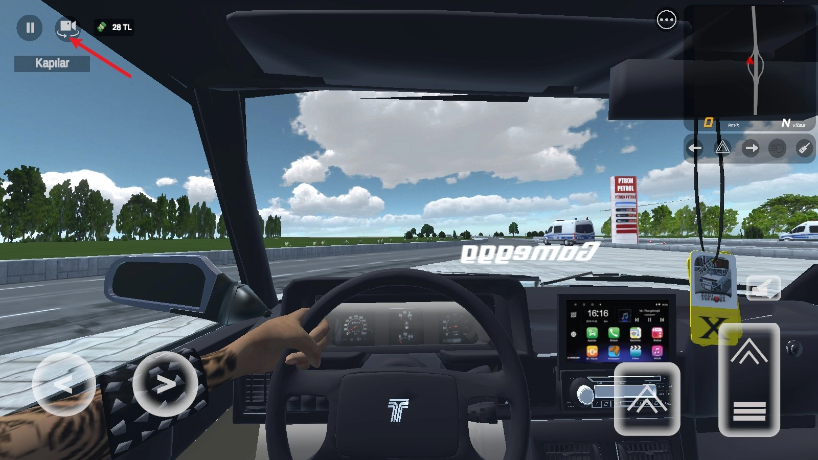 4、短踏板操作可实现后退,同时会切换至倒车视角。
