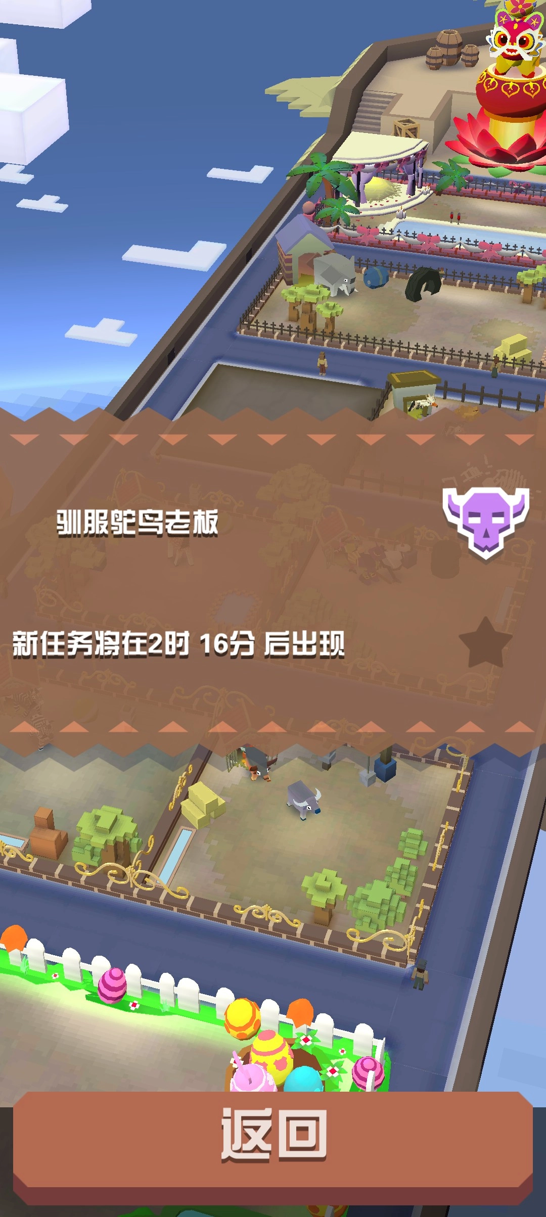 3、沿途还能看到鸵鸟和天马,玩家可通过快速奔跑跳上它们的背部。每一局都设定了需要抓捕的数量,骑着它们抵达终点后,不仅能和它们合影留念,还能将其成功驯服。