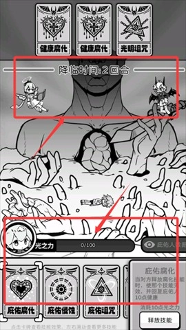 2、玩家在游玩过程中,会遭遇来自地狱的攻击,此时玩家既可以选择正面对抗,也能够尝试与攻击者搞好关系。