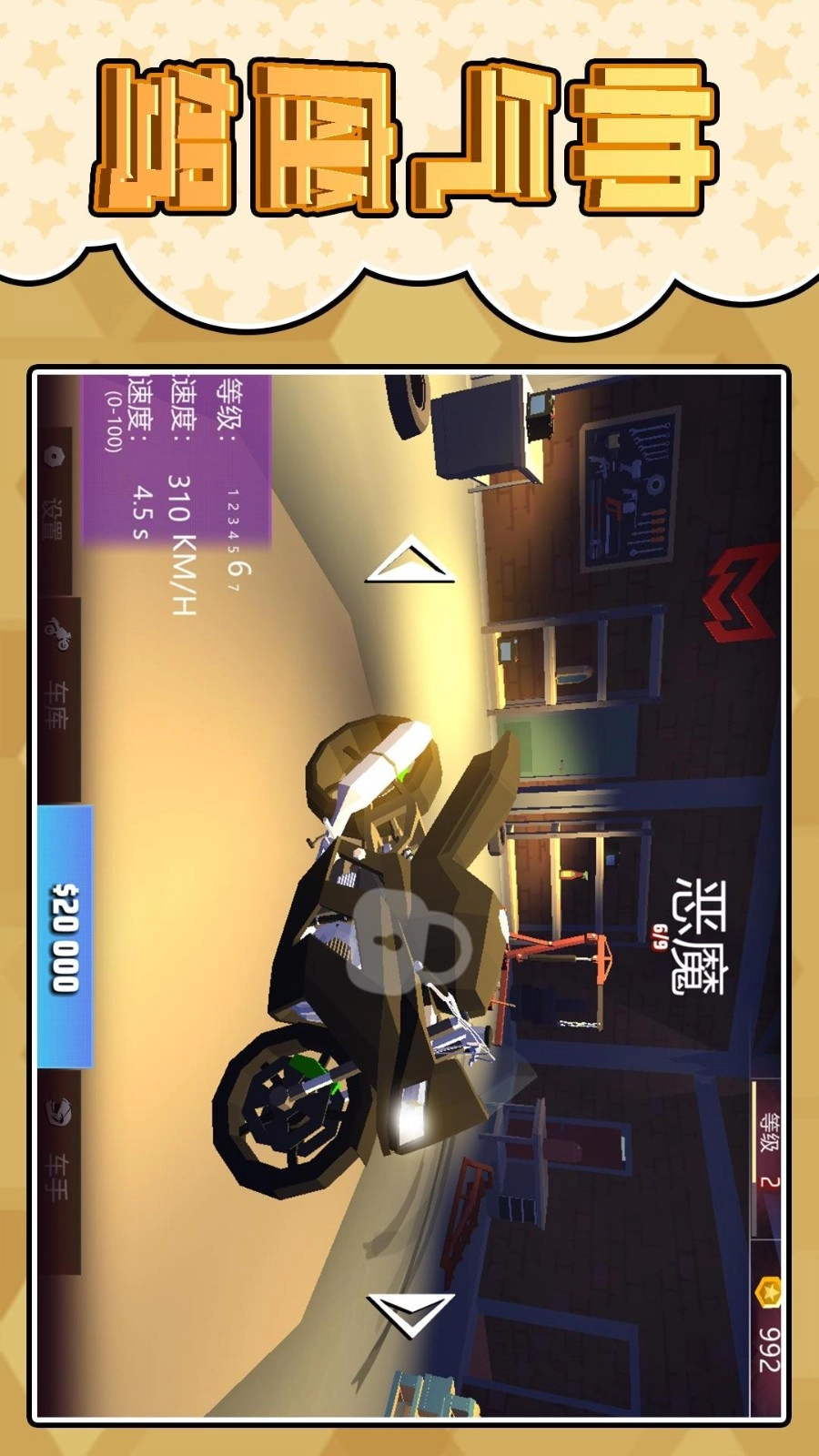2、不断强化并提升摩托性能,以加快速度的方式畅享极致冲刺快感,完成各项任务,同时还能施展强大技巧,迎接各方面的挑战。