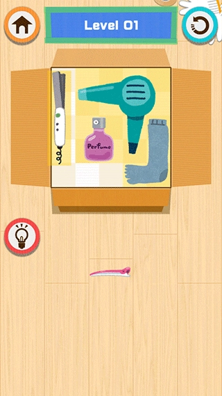 1、这款游戏内容挺有意思的,玩家要对物品进行整理收纳,然后封装起来。虽说挑战难度不算高,但还是得用心整理,把所有东西都塞进箱子,这样才算闯关成功。