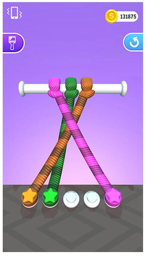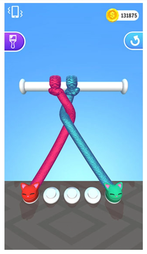 4、仅仅是简单的两三条绳子相互缠绕,却存在成百上千种不同的解法。玩家可以摸索出更契合自身的方式,成功解开所有绳子。随着游戏推进,后续关卡的难度还会持续升级。