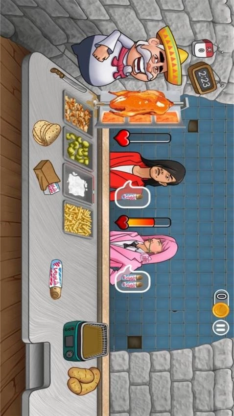沙威玛传奇美食,是一款超有趣的美食餐厅模拟经营游戏。在游戏里,玩家将化身为沙威玛烹饪大师,接待形形色色的食客,为他们提供美味的食物与优质的服务。只要保持较高的满意度和良好的口碑评价,就能吸引大批顾客前来用餐。你可以自主点击制作各种不同风味的烤肉卷,收获全新的经营体验。值得一提的是,所有订单任务的目标条件都清晰明了,轻轻一点查看,就能挑选合适的食材配料完成搭配组合。游戏还有丰富精彩的成就系统,每项成就都带来截然不同的挑战,完成后可收获奖励。随意点击就能体验多样乐趣。感兴趣的小伙伴别错过,快来试试吧!