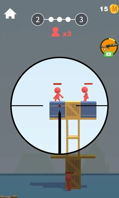 这是一款趣味十足的休闲射击类游戏。在狙击手袭击任务环节中,你将化身一名狙击手,对目标展开攻击,完成任务后还能收集金币。游戏操作简单,也是考验你手速的时候啦。