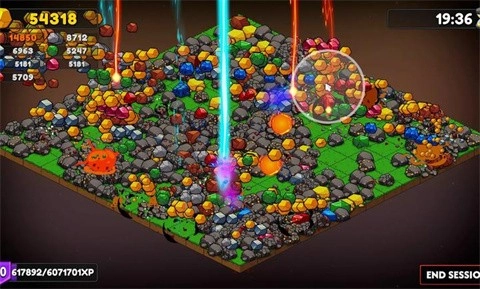 2、技能树分为力量、效率、幸运三大分支,升级诸如“陨石召唤”等终极技能,需要特定金属条组合来激活。
