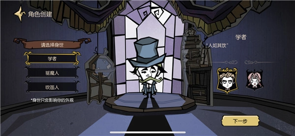 游戏开启后,首先要创建角色。除了能够选择性别,还能挑选身世。当下有「学者」、「驱魔人」以及「吹笛人」这几种身世供你选择。需要注意的是,身世仅对角色外观产生影响,因此选择自己看着舒服的就好。