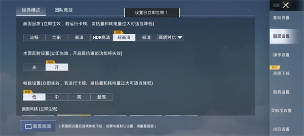 5. 重启游戏后,画质及帧率的设置不会失效。