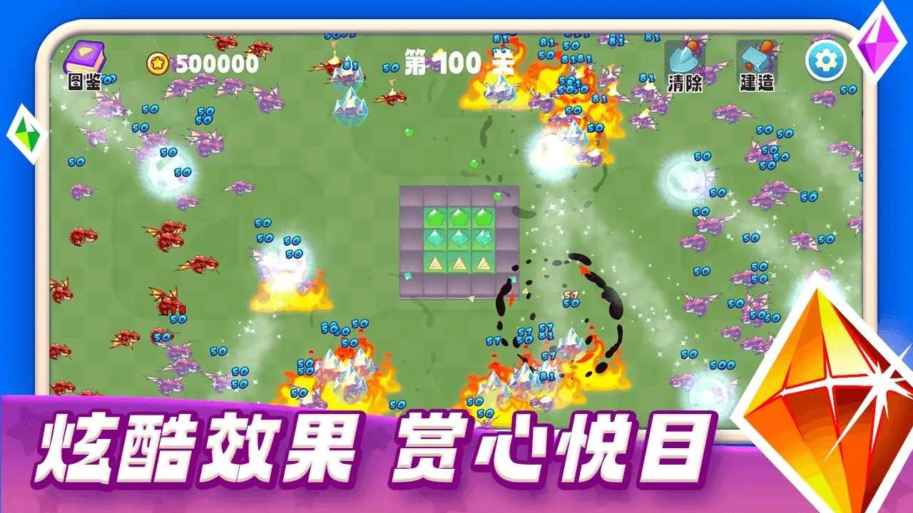 4、该游戏融合了塔防策略与2048消除玩法,玩家于游戏里合成相同方块,便能向敌人发动攻击。