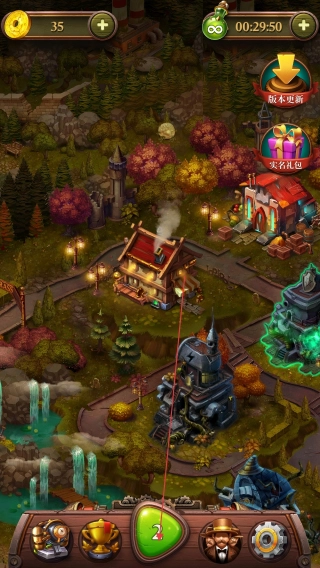 1. 开启游戏《蒸汽谜阵》,点击底部绿色的【2】按钮,进入宝石消除关卡。