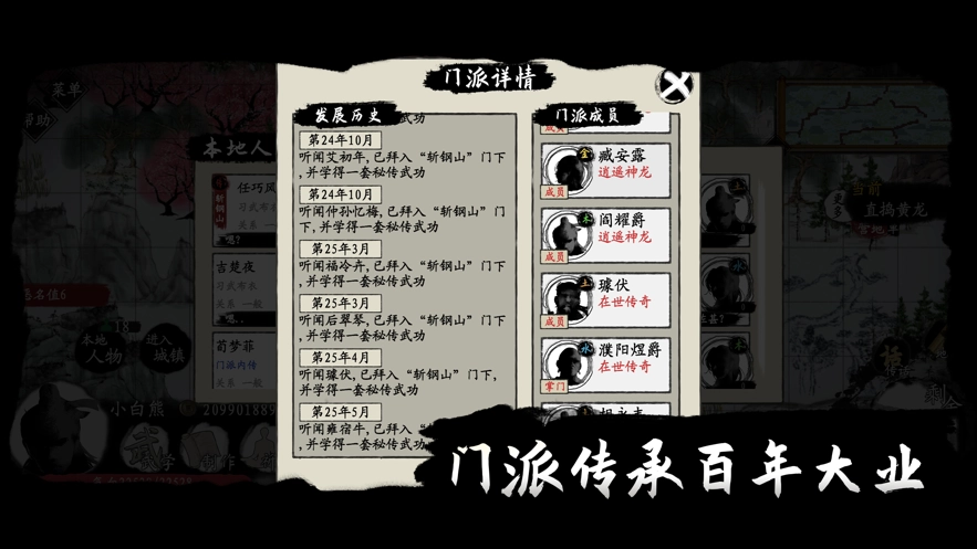 这是一款武侠风回合制冒险游戏,充满开放与自由。瞧瞧那初出茅庐的小角色,如何在九州大陆突破自身舒适圈,一步步开山立派,最终成为名震江湖的一代大侠。