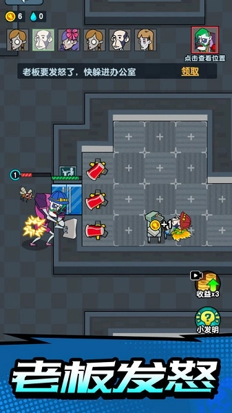 2、玩家能够凭借获取到的武器展开攻击,在游戏里破坏老板的办公室。要知道,没有什么比破坏老板的办公室更让人畅快的了。