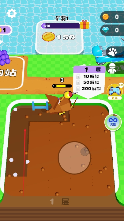 挖穿地球大冒险正式开启,你有胆量来迎接挑战吗?想不想摇身一变成为钻石开采界的大亨?!马上化身黄金挖掘工,挥动铁铲,开辟属于你的成功之道。在这款超有趣的模拟游戏里,一头扎进地底,尽情探寻宝藏。不过要小心,可别被困在坑洞里哦——招募工人,打造你的超级挖掘帝国,开启采矿寻宝之旅!向着地下100层进发!这款放置类矿工游戏,将为你带来顶级的挖掘体验。你的终极目标,就是不断深挖,寻觅各种珍稀宝石和璀璨钻石。努力成为最厉害的黄金矿工吧!如此一来,就能招募更多黄金挖掘工,让你的开采事业蒸蒸日上。