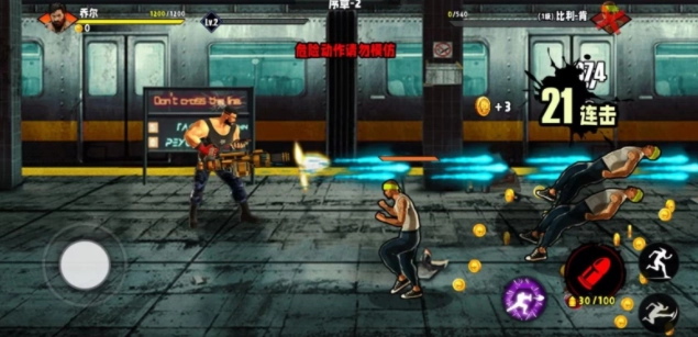 街头爆款格斗游戏,属于横向动作冒险类型。它有着丰富多样的街机格斗风格,经典横版设计搭配清晰的游戏版本。游戏内角色众多,可供玩家随心挑选,每个角色的攻击与战斗方式独具特色,使得玩家在关卡中的战斗体验也大不相同。快来准备迎接全新挑战,于此尽情畅享精彩绝伦的街头冒险吧!