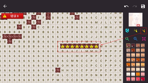5、就算绣错了也没关系,游戏会显示错误的数量。使用右侧类似橡皮塞的清除工具,就能轻松擦掉,可比现实中方便多啦。