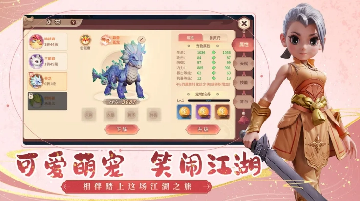 4、萌宠千变万化,在江湖中欢笑嬉闹,与你相伴共赴这场江湖之行。