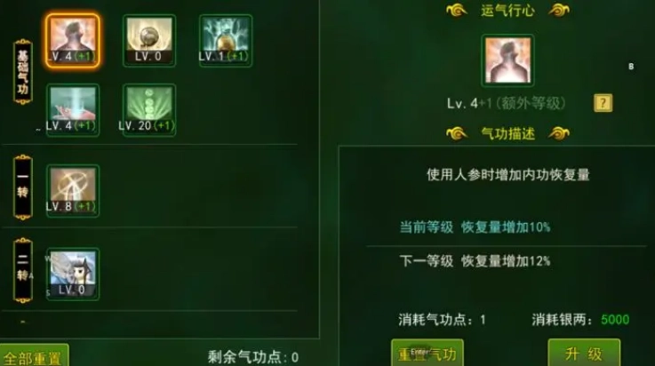 1、在1至10级时,总共需加9点,有以下2种方案:其一,将这9点全部加在秒手回春上;其二,给秒手回春加5点,其余4个技能(运气行心、太极心法、体血倍增、洗髓易筋)各加1点。在此推荐第二种方法。