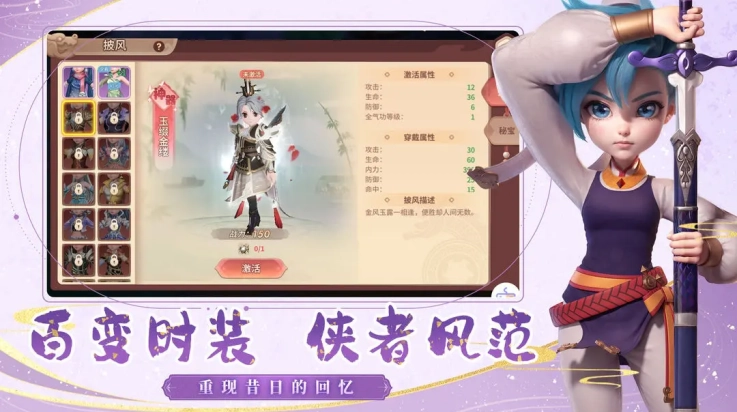 3、多样时装,尽显侠者风范,重溯往昔回忆。