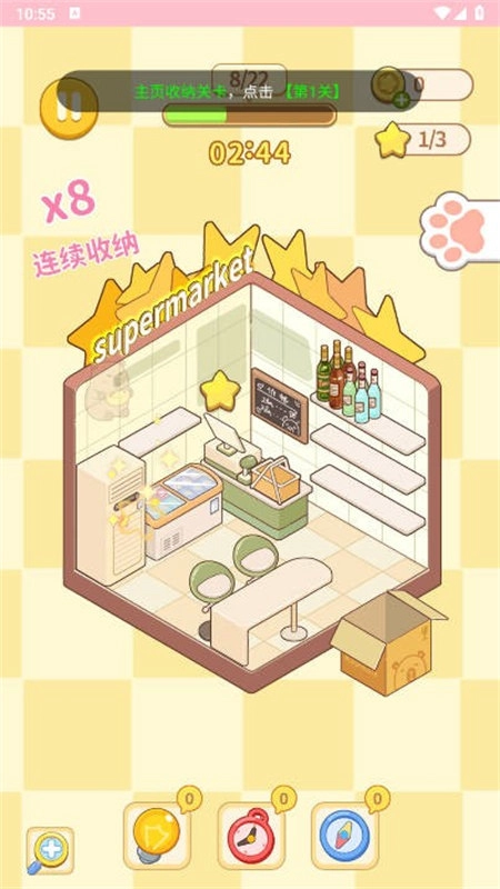 这是一款画风萌趣、玩法轻松的收纳类游戏,特别适合有强迫症的玩家体验。尽情施展你的收纳本领,把房间里杂乱无章的物品统统收拾规整,如此便能解锁更多收纳空间。