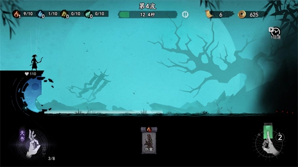 3、进入关卡后,右下角会自动生成具备各种属性的符咒供你使用,每次获取的符咒品质各不相同。