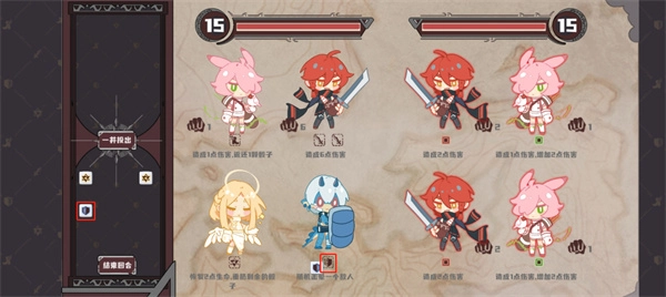 3、当角色移动到敌人或精英所在位置时,玩家必须击败敌人方可继续前进。玩家可通过拖动单个骰子或点击按钮的方式进行投掷。