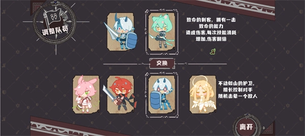 7、当角色移动至盟友图案处时,玩家有两种选择:一是从游戏给出的两个英雄中挑选一个进行替换;二是直接点击离开。
