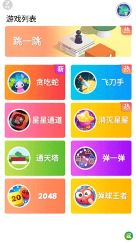 1、当你进入应用,便能挑选多款经典游戏来试玩,像跳一跳、贪吃蛇、消灭星星之类都包含在内。