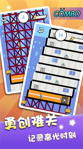 3、在通天塔挑战里,玩家要依靠堆叠长条来获取更高分数,必须确保每次堆叠的长度不低于上一块,不然就会扣分。