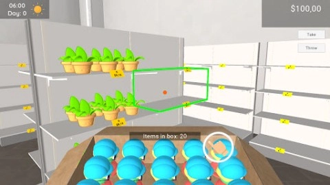 1. 打开游戏,走进超市,发现店内空无一物,首要任务便是将玩具上架。