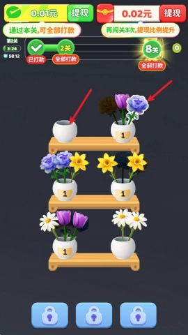 1、在游戏里,玩家只要点击随便一朵花朵,就能轻松实现移动操作,而且还能够把它移动到花瓶内的空白位置。