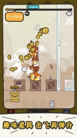 2、没发挥好?别担心,咱们有道具来助力!依靠强力弹簧,能轻松弹射升空,向着天际翱翔!要是觉得还不过瘾,那就尝试触发TNT炸药,争取在摔落之前再来一场精彩的拼搏!