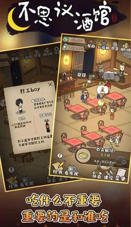 不可思议酒馆正版,这是一款独具魅力的剧情模拟游戏。在繁华都市里,你能够自由自在地经营属于自己的酒馆。在这里,你可以和酒馆里来来往往的旅客畅快交流,分享自己的人生感悟,倾诉暖心的心灵鸡汤。在游戏中,你将尝尽人世间的酸甜苦辣,用心经营一所充满奇幻色彩的酒馆,接纳人生中的每一位过客,为他们排忧解难。还在等什么?快来加入游戏体验一番吧!