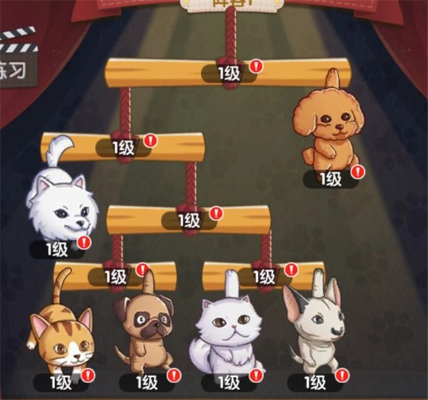 3、当对方采用以下这种阵型时,割绳操作实际上较为困难。原因在于上方有一只动物阻碍了割绳的路径,致使无法直接对其造成团灭伤害。此时,我们可挑选一些具备穿透技能的动物展开进攻,像柯基、日本田园猫等,以此提高容错率。