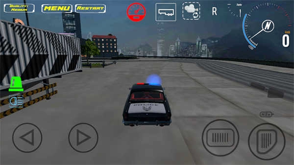 3、进入游戏后,右侧按键可用于加油和刹车,左侧按键则能操控警车移动。