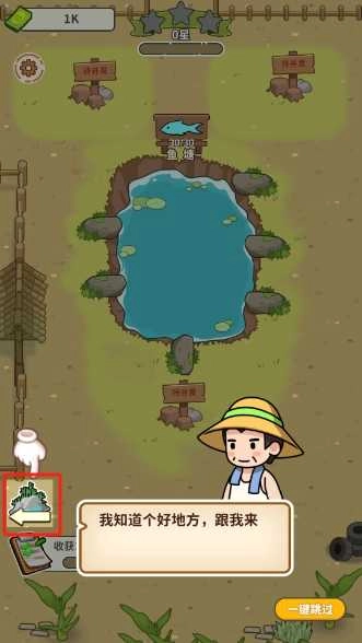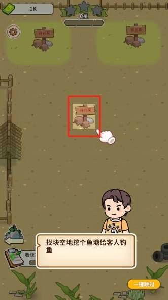 1、开启游戏后,我们第一步要点击此处挖掘鱼塘。