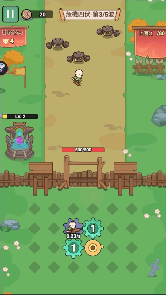 1. 开启防御塔防类战斗,其中光头造型的角色十分可爱,操控角色移动即可展开战斗。